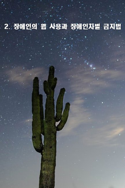 장애인과 인터넷 이용환경 인터넷은 이동이 불현하거나 소통이 어려운 장애인 사용자에게는 웹 접근성을 높여 이용 가능하도록 하는 것이 중요한 요소가 된다. 장애인차별 금지법 장애인 차별금지 및 권리구제 등에 관한 법률의 줄임 말 이다. 모든 생활 영역에서 장애를 이유로 차별을 금지하고, 장애를 이유로 차별 받은 사람의 권익을 효과적으로 구제하기 위한 법이다. 장애인차별금지법속에 웹 접근성에 해당하는 전자정보를 차별 없이 동등한 수준으로 제공해야 한다. 라는 내용이 들어있다. 웹 접근성 의무적용 시기 모든 웹 접근성을 의무 적용 해야 한다. 민간 일반 공연장 및 소공연장과 300석 이상의 영화상영관, 사립박물관과 미술관 제외된다.